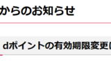 有効期限については、dポイントクラブアプリでいつでも確認できますし、マイドコモにログインするとdポイントのところで失効が近い分は教えてくれています。
